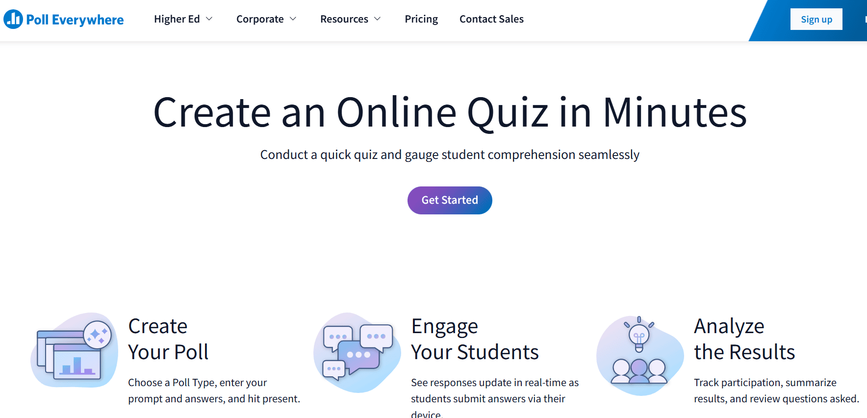 Poll Everywhere lets you collect live audience responses during presentations. It’s ideal to have a real-time connection.